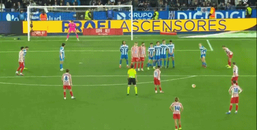 第61分钟,十分角,格列兹曼任意球破门,马竞1-0拉科